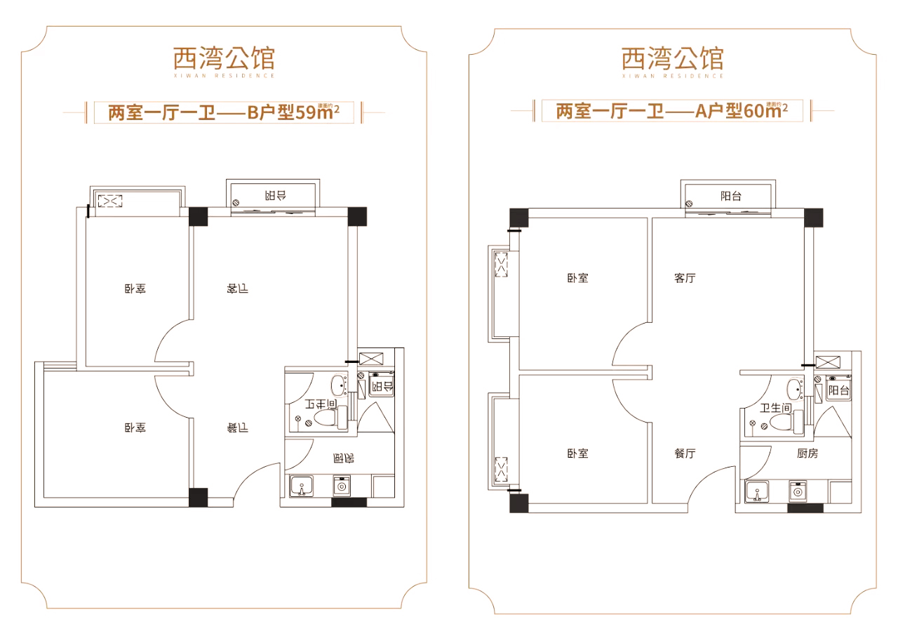 58~60㎡二房一廳一衛(wèi)