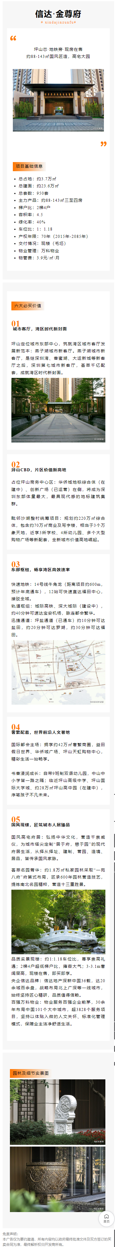 項目為央企信達聯袂國宅宗師泰禾匠造的府系尊品,沿襲泰禾院子品質標準,遵循古建筑匠心打造國宅精工品質,配有國家一級資質泰禾物業,提供金鑰匙管家服務。